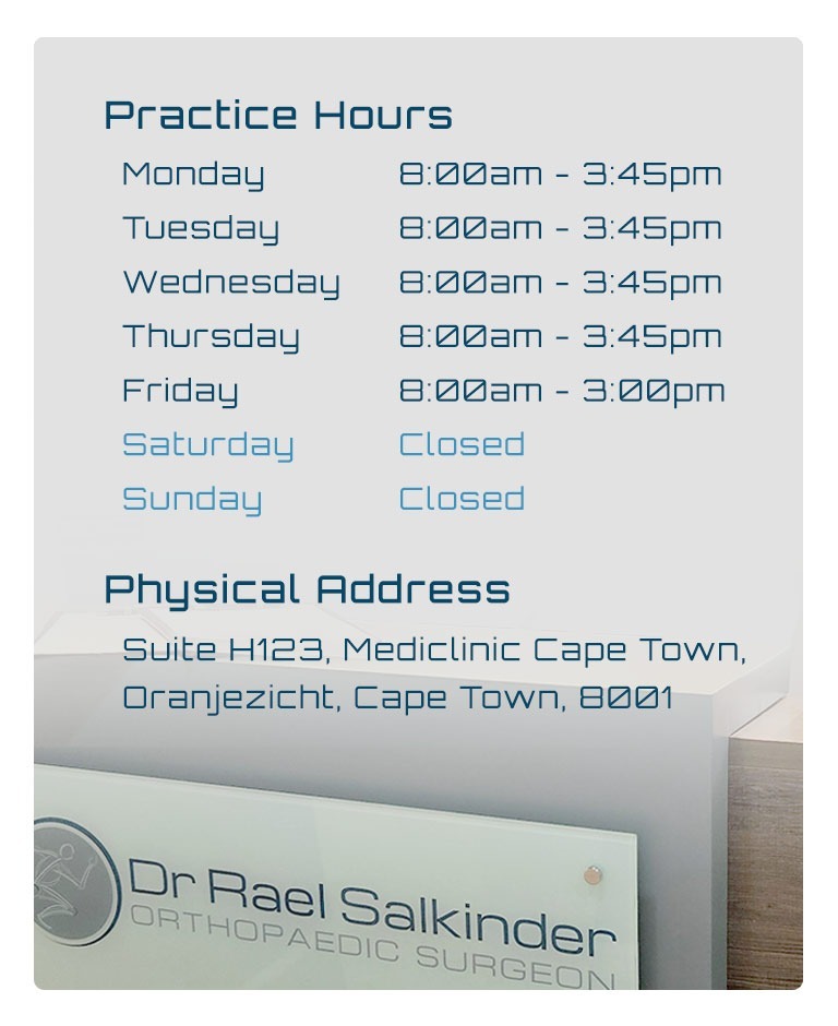 Welcome to Dr Rael Salkinder, Orthopaedic Surgeon